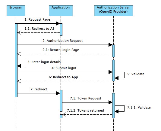 +--------+ +---------------+ | |--(A)- Authorization Request ->| Resource | | | | Owner | | |<-(B)-- Authorization Grant ---| | | | +---------------+ | | | | +---------------+ | |--(C)-- Authorization Grant -->| Authorization | | Client | | Server | | |<-(D)----- Access Token -------| | | | +---------------+ | | | | +---------------+ | |--(E)----- Access Token ------>| Resource | | | | Server | | |<-(F)--- Protected Resource ---| | +--------+ +---------------+OIDC 인증 플로우